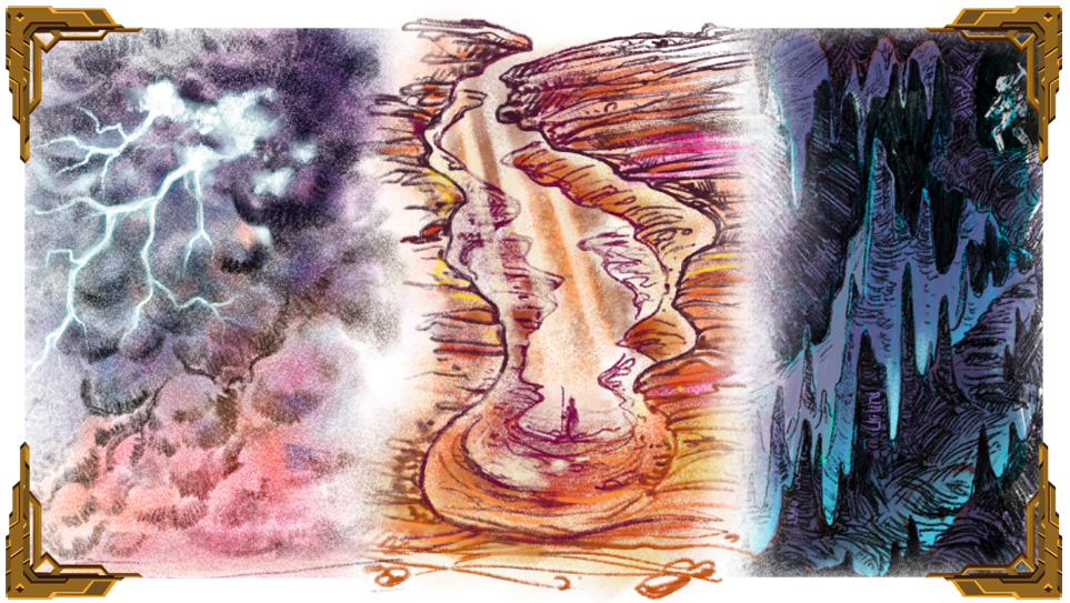This hellish desert landscape is ever-changing and constantly fighting back. The harsh weather and terrains endlessly shift, making no two journeys across the basin the same. Throughout the 7 diverse terrains there are 12 key locations.