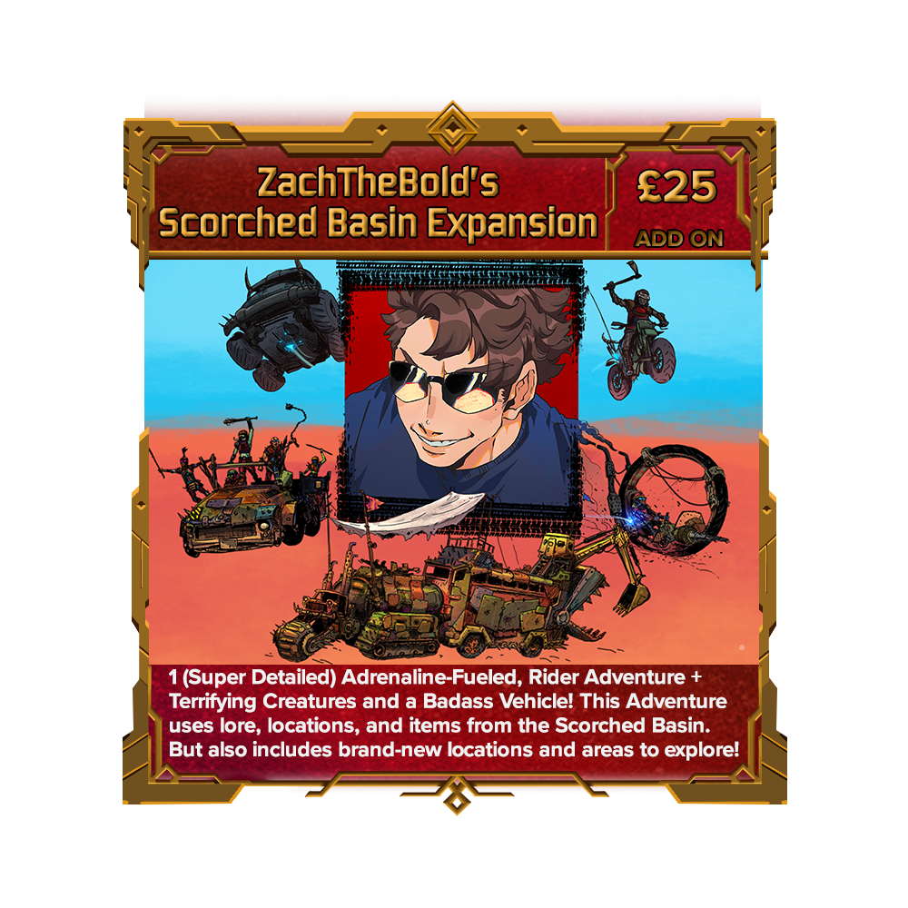 1 (Super Detailed) Adrenaline-Fueled, Rider Adventure + Terrifying Creatures and a Badass Vehicle! This Adventure uses lore, locations, and items from the Scorched Basin. But also includes brand-new locations and areas to explore!