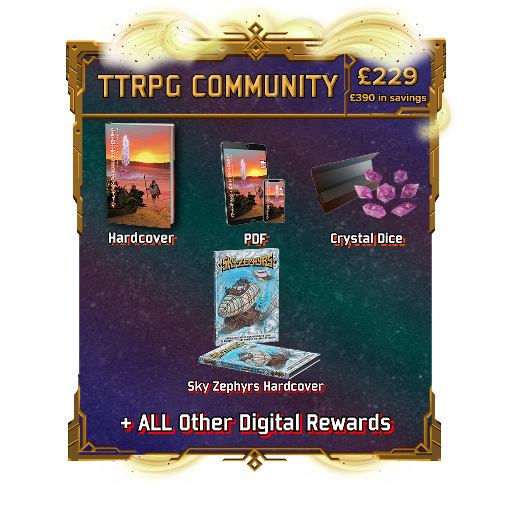 Scorched Basin Kickstarter, TTRPG Community Tier, Long Description