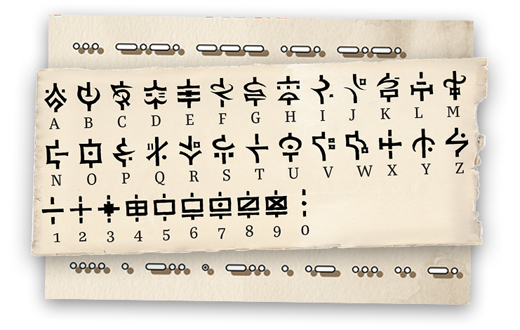 We created 3 fantasy languages for in Scorched Basin for you to discover and learn. Each language in the book comes with an alphabet and all the tools needed to utilize them in your games. We were able to create typable fonts for 2 of them.