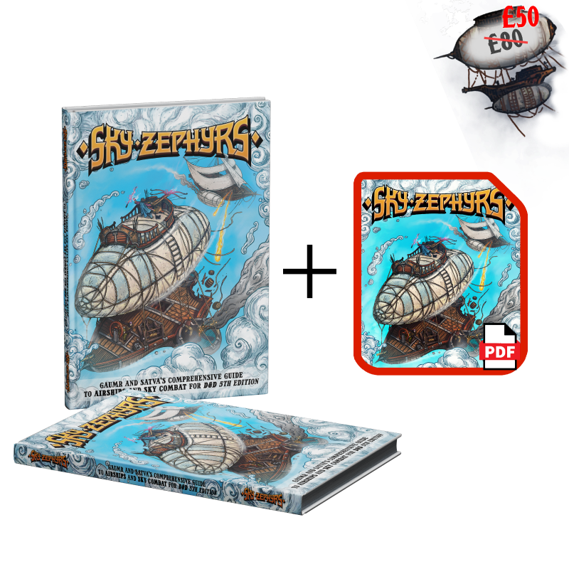 Sky Zephyrs is a 250+ page tome that reimagines how vehicles and airships operate in DnD5e. Unlock a whole new way to experience swashbuckling, dynamic 3-dimensional vehicle movement and combat as you take your adventures to new uncharted heights. Soar across the skies in your custom-built Zephyr and hand-selected Aircrew. Use our vast collection of items, spells and player options to turn the tide as you face a menagerie of creatures and NPC Zephyrs.