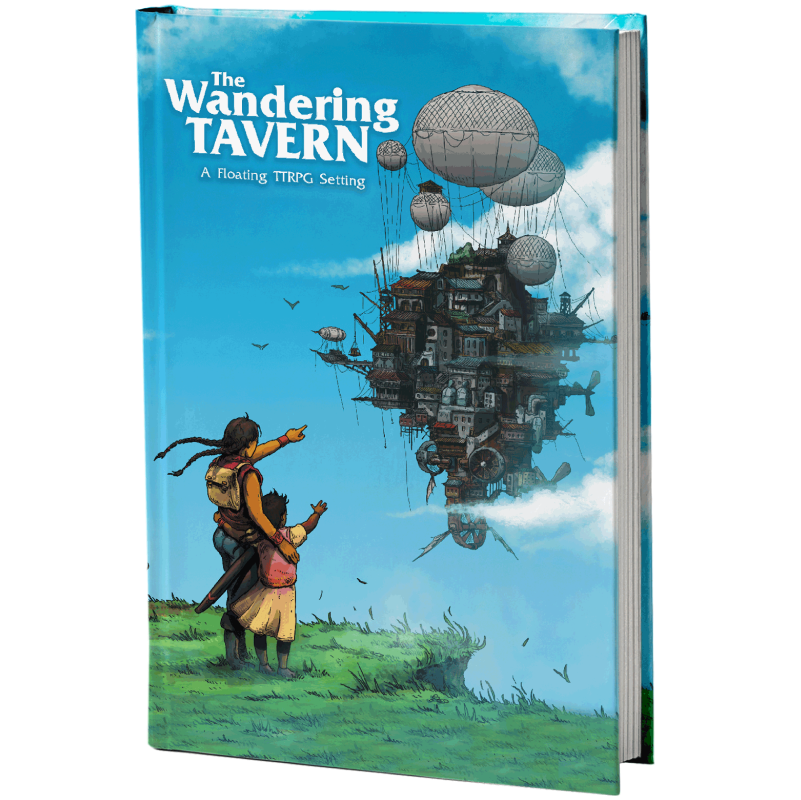 This is a system agnostic floating TTRPG setting with optional D&D 5e stats included. It’s packed full of plot hooks, mysteries, threats, and everything you need for a campaign. However, if you already have an established world/setting, The Wandering Tavern is the perfect pit stop for your Players to visit, take a load off, and delve into a whole new sort of adventure. Â